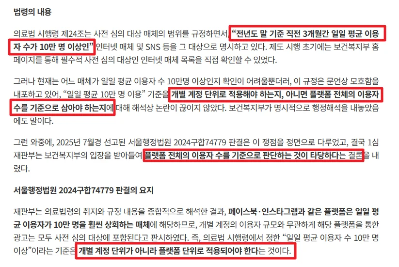 이 구분이 명확하지 않으면 대형 플랫폼의 전체 이용자 규모와 병원이 운영하는 개별 SNS나 블로그가 같은 선상에서 다뤄지고, 그 과정에서 불필요한 혼란과 갈등이 반복될 수밖에 없다.