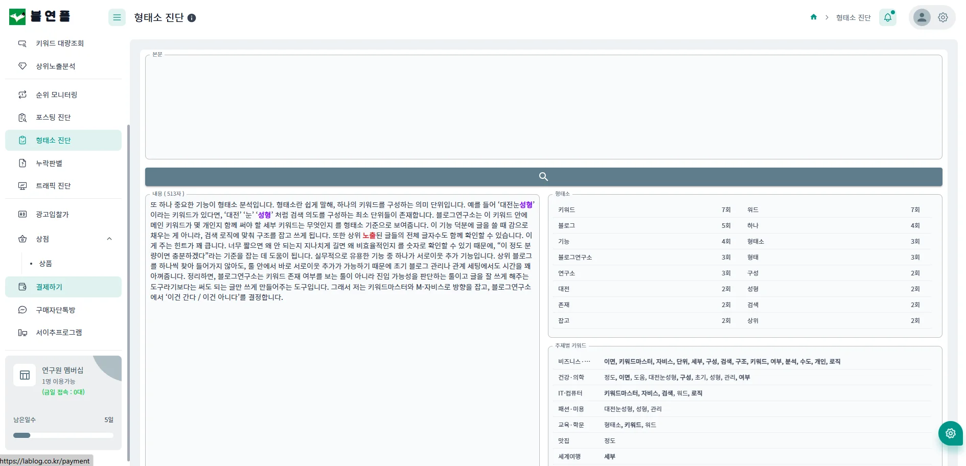 블연플에서 경쟁도·상위노출 가능성을 정밀하게 판단하는 식이죠.